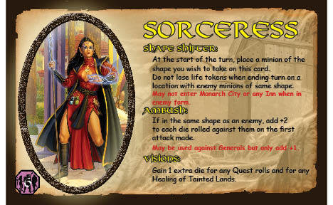 After a player has expended all of their action points, they must draw two Hero Cards and a number of Darkness Spreads cards as defined by the War Track. The default is to draw two Darkness Spreads cards, and these cards have one or two locations listed. You must place new minions on each of the locations which not only brings you closer to doom, but can cause overruns of minions which Taints the Land and spreads the evil even faster. On top of that, the bottom of the Darkness Spreads card has an icon of a General and a location listed which in many cases causes a General to move closer toward Monarch City and defeat. The Generals always move in a predisposed path along their General track, which is listed clearly on the board, and when they move to a new location they also spawn new minions to their location, which again can cause overruns, Tainted Land, and a whole ration of bad shit to happen.