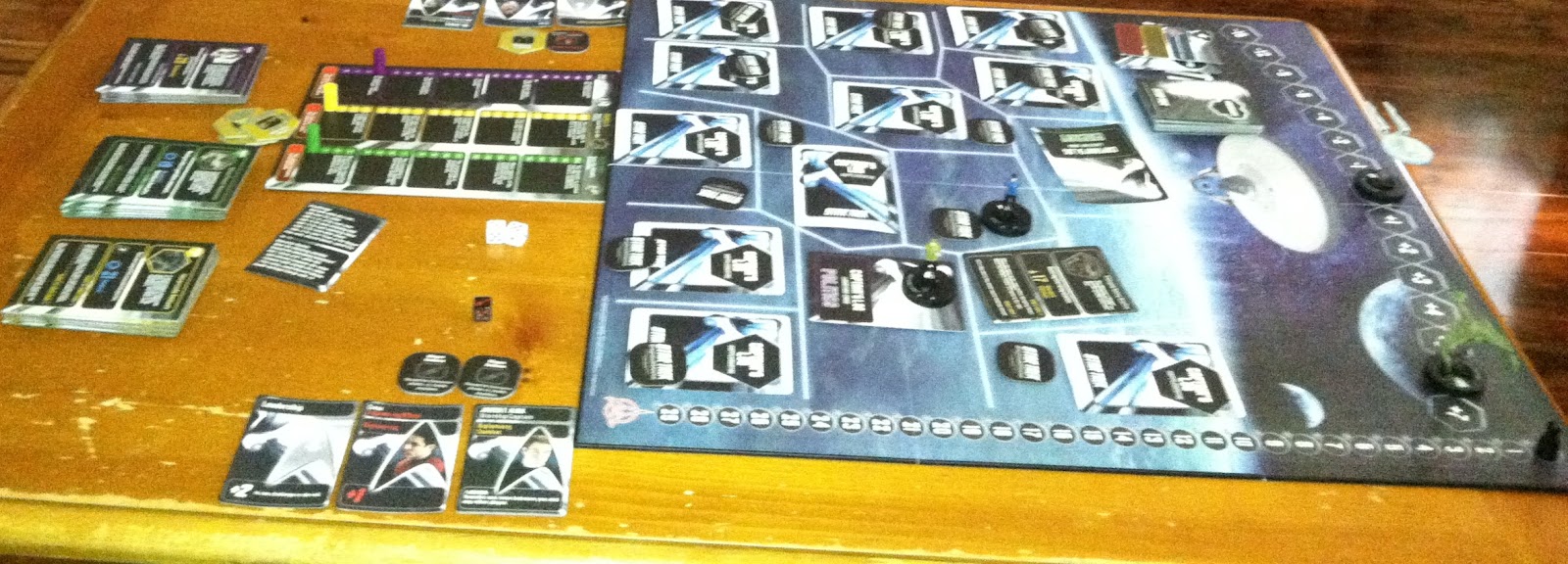 What this means is that every time you play, you’re trying to one-up yourselves from a score perspective, and that’s the only reason to keep playing. Really, this game doesn’t even have a “ending” per se, or more accurately a climax. The game ends, sure, and you get a score, but it’s not like Pandemic where it ends and you immediately totally lose or totally win. It’s a score-based game, so you’re just looking to get the best score you can. There’s also a built in timer mechanism, so if time runs out, you lose, or if the Enterprise is blown into little blood soaked rippy bits, you are captured by the Klingons and have your giblets torn out. So, either you lose, which is climactic, or you win, which is more of an “ah, yes, we did well” or “man, we sucked ass” kind of thing.